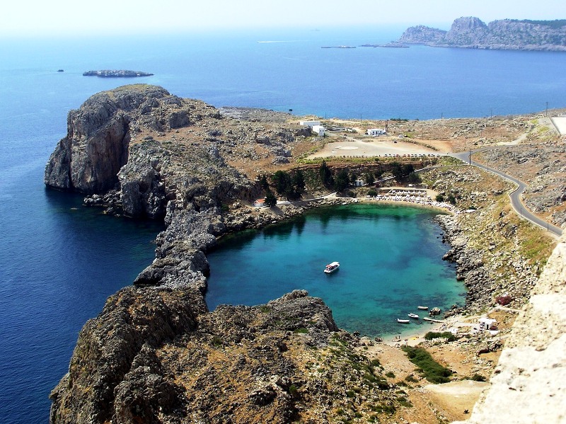 Στους πρόποδες της Ακρόπολης στην Λίνδο, βρίσκεται ο κλειστός κόλπος του Αγίου Παύλου. Από ψηλά φαίνεται σαν πισίνα που έχει σχήμα καρδιάς.